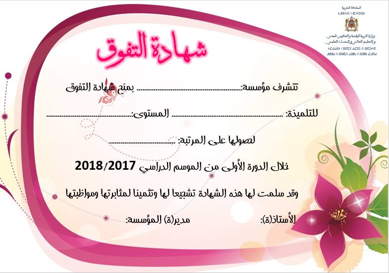 يسرنا أن نضع بين أيديكم و تحت تصرفكم ملفا خاصا بمستوى التعليم الابتدائي و التعليم المتوسط و يتمثل في شهادات تقديرية تهنئة تشجيع لوحة شرف امتياز شكر و تقدير و تفوق بصيغة وورد word. نماذج شهادات تقدير مايكروسوفت وورد word. شهادات تفوق بشعار الوزارة الجديد قابلة للتعديل بتصميم مميز 2 08 30 2013 09 15 pm بارك الله. شهادة 1 doc 417 0.